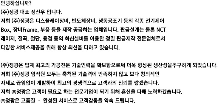 주소 : 31094 충청남도 천안시 서북구 백석공단 1로 69 ㈜정광