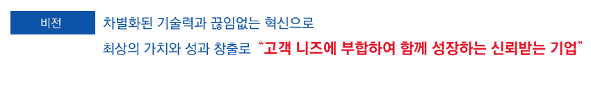 · 차별화된 기술력과 지속적인 혁신으로 고객에게 정확하고 안정적인 제품과 서비스를 제공한다. |